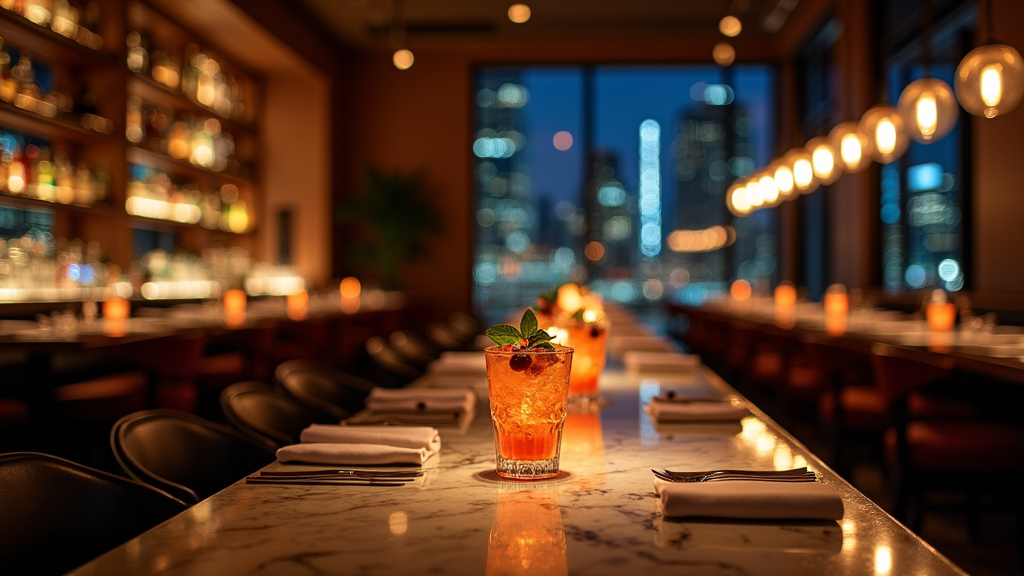 The lighting is intentionally dim, relying on brass sconces and candlelight to create an atmosphere that feels both exclusive and welcoming. It is the type of environment that transitions seamlessly from a high-stakes power lunch to a romantic evening destination.